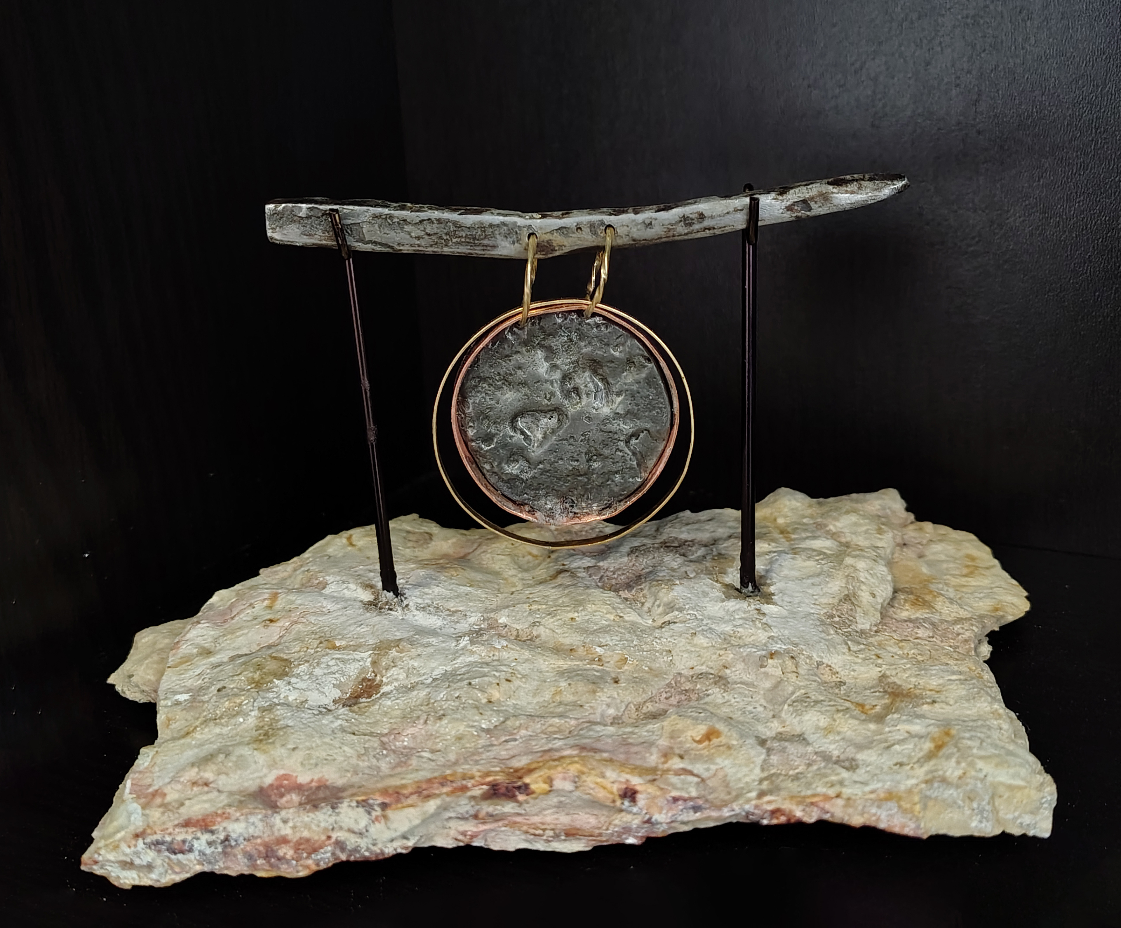 Chi'bal K'iin "When the Sun is Eaten", Wearable Art- Broach, 2" x 4" x .25", 2024